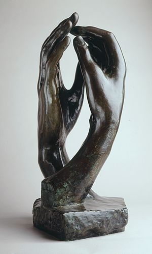 La cathédrale est une des sculptures les plus connues de Rodin. Elle révèle, de prime abord, une impressionnante simplicité. Il s’agit d’une composition en pierre constituée d’une paire de mains. En vérité, deux mains droites de deux personnes différentes, dont les avant-bras s’entrecroisent et s’allongent pour